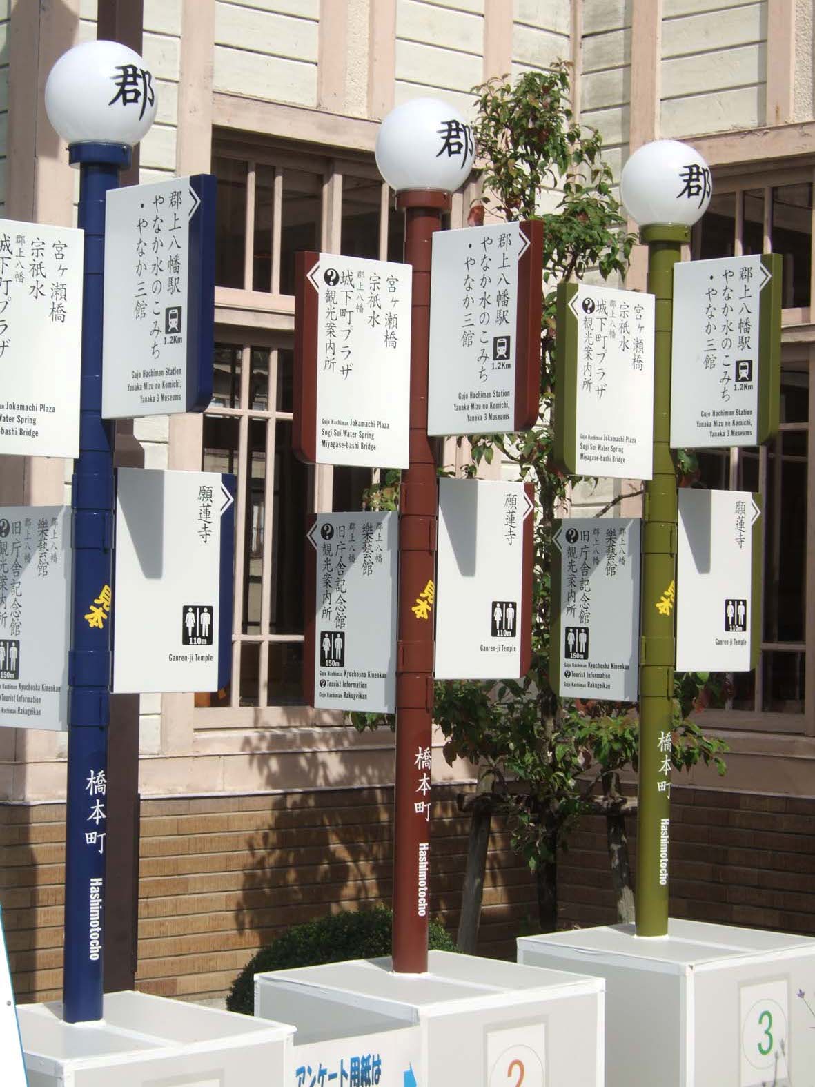 | 387 | 案内サイン |  | Noboru Ito | Japan | Gifu | Gujo-shi | 色彩実験用に展示された案内サインのサンプル。旧庁舎記念館前に約2週間展示された。 |
