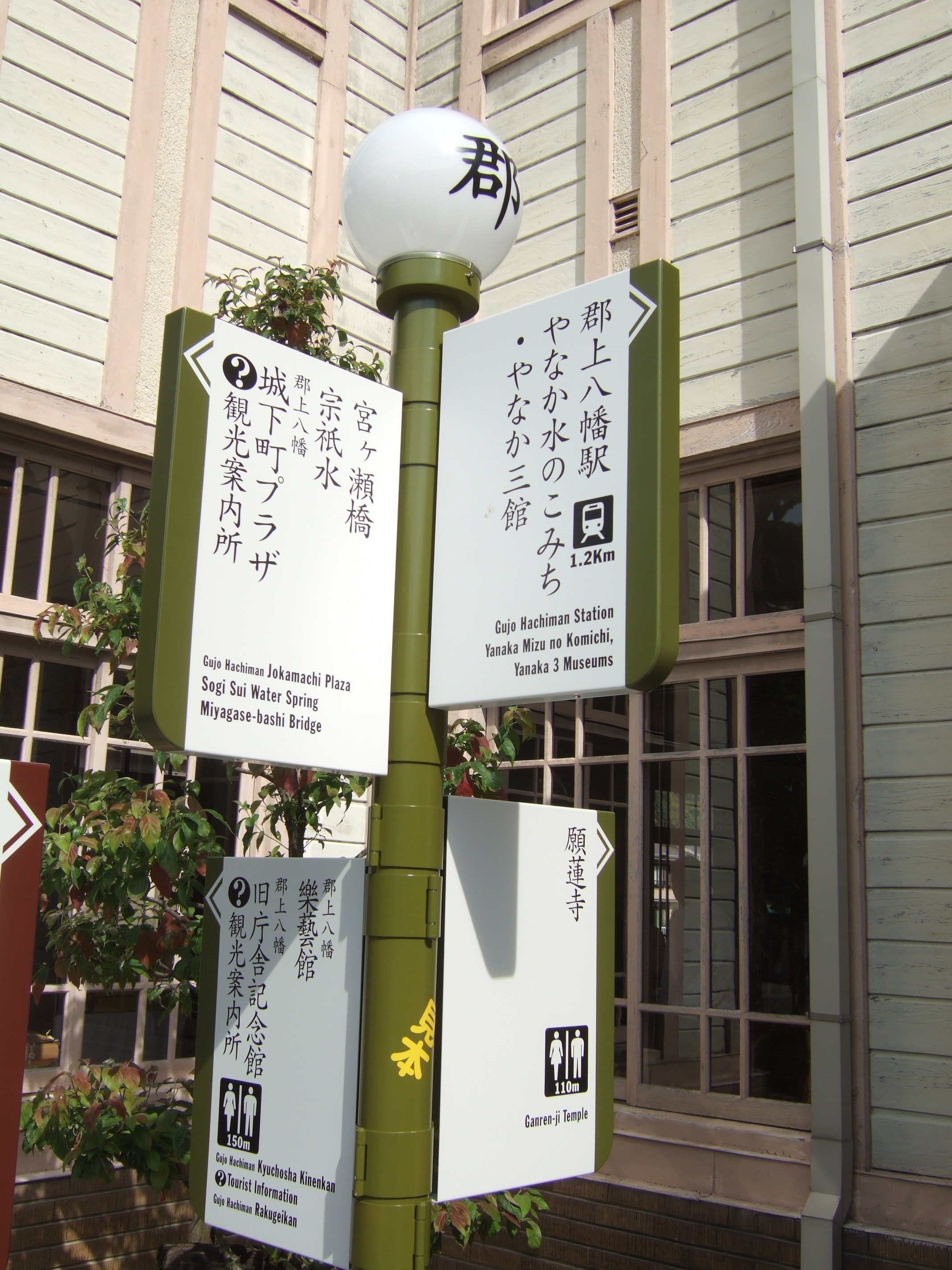 | 386 | 案内サイン |  | Noboru Ito | Japan | Gifu | Gujo-shi | 色彩実験用に展示された案内サインのサンプル。旧庁舎記念館前に約2週間展示された。 |