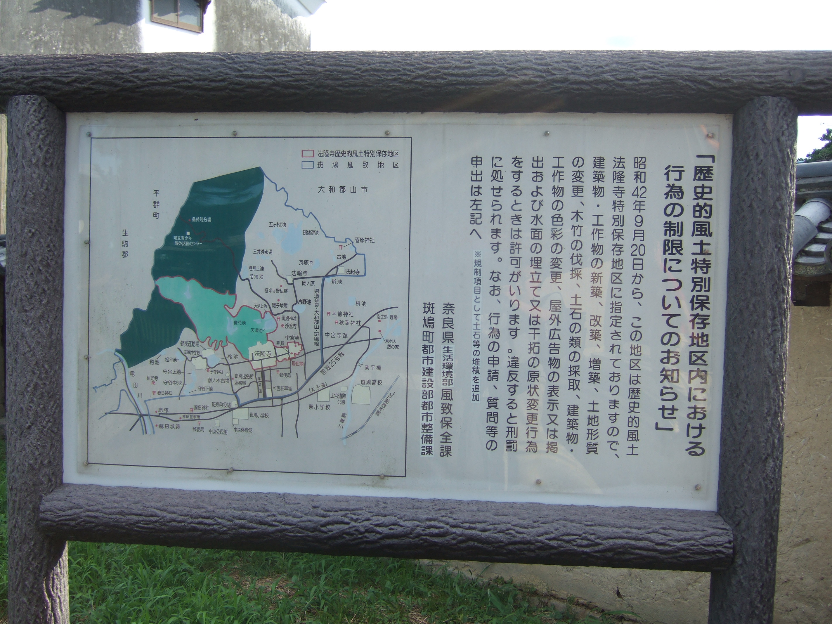 | 419 | 法隆寺 |  | Noboru Ito | Japan | Nara | Ikaruga-cho | 保存地区内の行為の制限に関する説明板 |